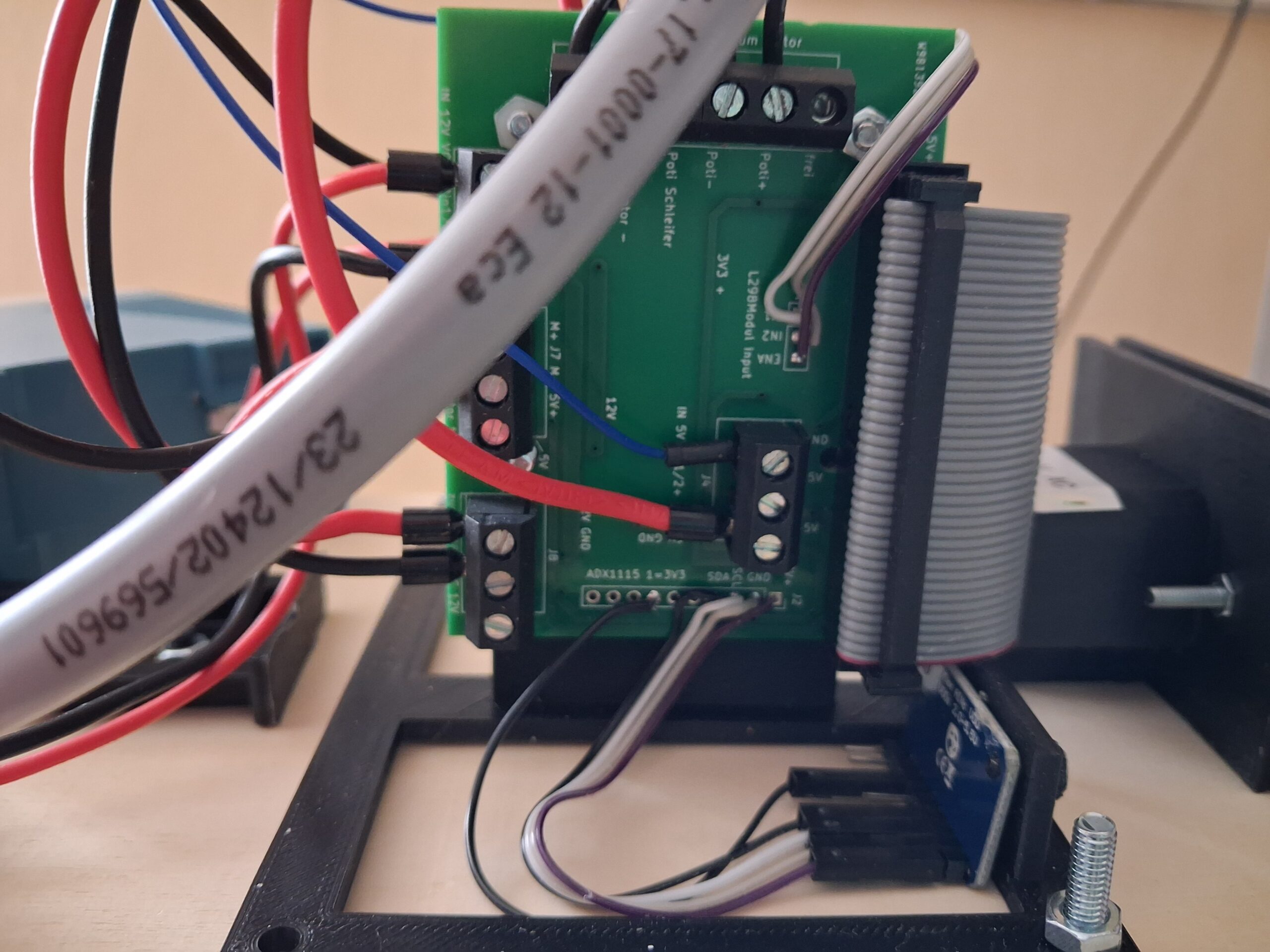 Das ADS1115-Modul enthält vier Analog-Digital-Wandler mit 16-Bit-Auflösung und kann Spannungen zwischen 2V und 5V messen. Es wird mittels I²C-Schnittstelle am Raspberry Pi angeschlossen. Ich frage damit das Potentiometer im Rotorgetriebe ab, um die aktuelle Drehrichtung zu ermitteln. - https://www.amazon.de/dp/B0C84VLLC9