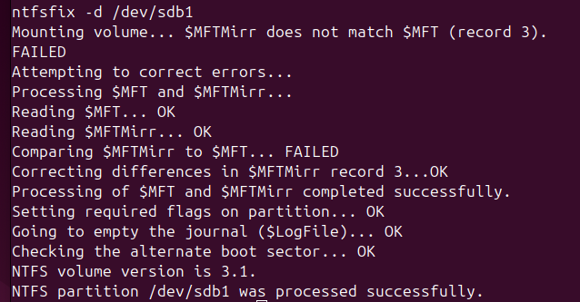 Lösung: sudo ntfsfix -d /dev/Laufwerksbezeichnung