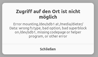 Nach einem Update von Ubuntu 22.04 LTS auf 24.04 LTS konnte das Lauwferk unter sdb nicht mehr angezeigt werden. Es handelt sich dabei um einen NTFS-formatierten Datenträger.